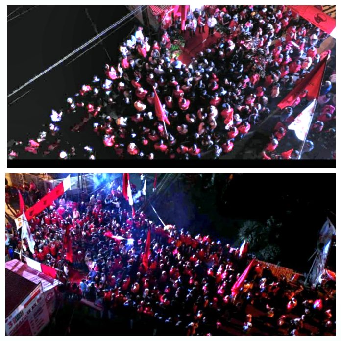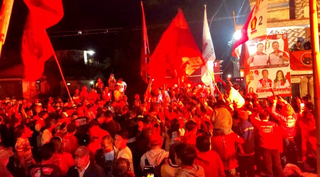 Seribuan massa pendukung dan simpatisan dari generasi milenial hingga orang tua usia lanjut tampak membludak di dua lokasi peresmian Rurukan dan Rurukan Satu dengan mengenakan kostum berlogo PDI-Perjuangan dan kemeja putih P. Gerindra sambil berteriak yel yek “Caroll-Sendy Menang, Menang, Menang, Caroll Sendy, Lantik Jo”