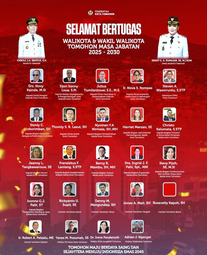 312 NEWSTomohon Blitznewsmileniumtimes, 52 Anak Buah Caroll-Sendy, Siap Menjalankan Tugas dan Berkarya Untuk Rakyat Tomohon (fry). FacebookTwitterPinterestWhatsApp BAGIKAN By: Jud Date: March 5, 2025 Previous articlePuluhan Warga Tomohon Berbagai Komponen, Beri Ucapan Selamat Kepada Caroll-Sendy, Wali dan Wawali Pilihan Rakyat (fry).Next articleUcapan Selamat BAGIKAN FacebookTwitterPinterestWhatsApp TERBARU Koordinator Satgas MBG Tomohon Dr. Dolfin Karwur : 4 SPPG Wajib Jalankan Rekomendasi Perbaikan TOMOHON, MILENIUMTIMES.com — Influencer Didi Roa Terlihat Mampir Makan @Kuliner Noni Foodie di Halaman Gereja Tua Sion Tomohon tadi malam, Rabu (15/4/26) (fry). Serius Kembangkan Industri Kreatif Tomohon, CS Perjuangkan Langsung Kepada Mentri Erkraf Kelola Sampah, Menteri LH Hanif Nurofiq Nilai Tomohon Berhasil Tinggalkan Open Dumping Dibuka Mendagri Tito Karnavian, Wali Kota CS Hadiri Musrenbang Sulut, Menteri Sirait Juga Hadir