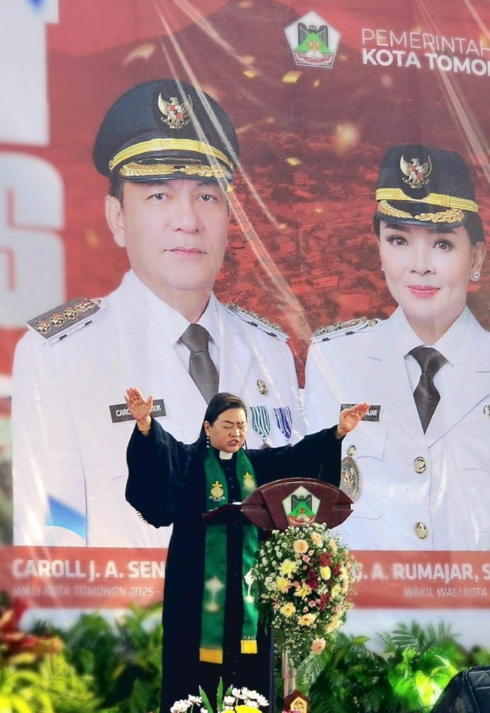 TOMOHON, MILENIUMTIMES.com – Ibadah Syukur pelantikan Wali Kota dan Wakil Wali Kota Tomohon Caroll Senduk dan Sendy Rumajar periode 2025-2030 digelar di Gelanggang Olahraga (GOR) kebanggaan masyarakat Kota Tomohon, Babe Palar, Rabu (5/3/25).