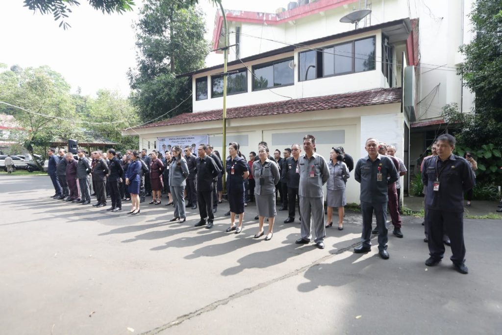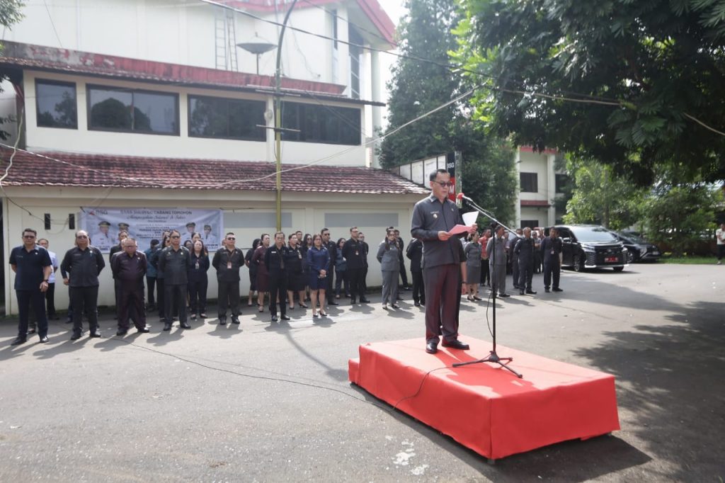 TOMOHON, MILENIUMTIMES.com — Apel perdana Pemerintah Kota Tomohon dipimpin langsung Wali Kota Tomohon Caroll Senduk selaku Pembina upacara didampingi Wakil Wali Kota Sendy Rumajar yang digelar di Lapangan Kantor Wali Kota, Kamis (6/3/25).