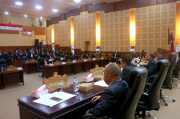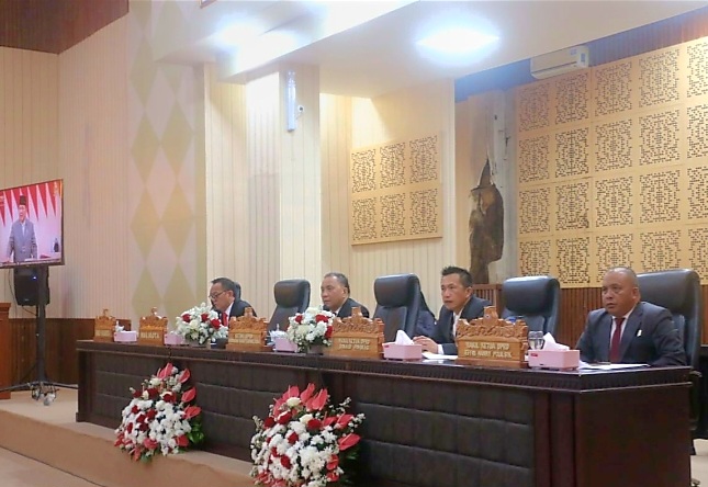 Rapat paripurna yang digelar di ruang rapat DPRD Kota Tomohon pada Jumat (15/8) dibuka oleh Ketua DPRD Ferdinand Mono Turang, didampingi Wakil Ketua DPRD Donald Pondaag dan Jefry Polii.