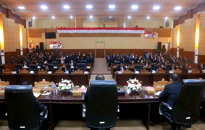 TOMOHON, MILENIUMTIMES.com –Wali Kota Tomohon Caroll Senduk, menghadiri rapat paripurna DPRD Kota Tomohon untuk mendengarkan pidato Presiden Republik Indonesia dalam rangka penyampaian keterangan pemerintah atas RUU tentang APBN Tahun Anggaran 2025 beserta nota keuangan dan dokumen pendukungnya.