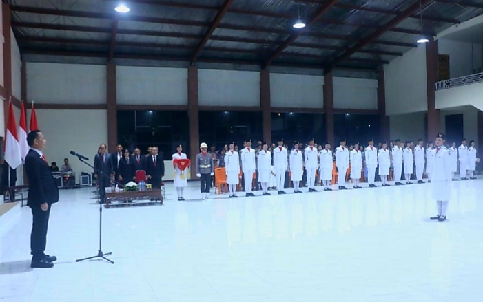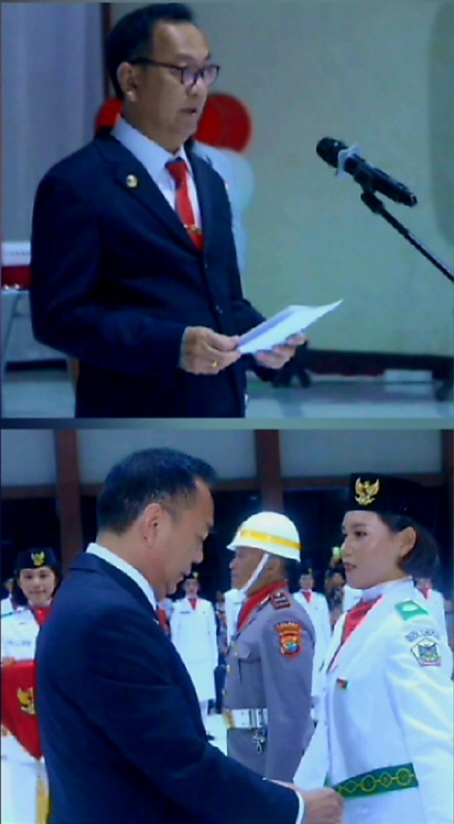 Pada kesempatan itu, Wali Kota bertindak sebagai pembina upacara sekaligus melakukan pemasangan tanda pengukuhan kepada para anggota Paskibraka.