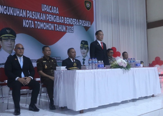 TOMOHON, MILENIUMTIMES.com — Upacara Pengukuhan Pasukan Pengibar Bendera Pusaka (Paskibraka) Kota Tomohon Tahun 2025 dipimpin langsung oleh Wali Kota Tomohon Caroll Senduk yang digelar pada Jumat (15/8).
