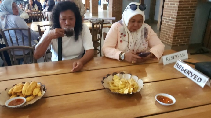 Sebelum meneruskan perjalanan, salah satu anggota rombongan ditemui ditanya kesannya selama berada di area Danau Linow Resprt. “Luar biasa indahnya Danau Linow Tomohon, tempatnya sangat bagus,” ujar Rika Rumagas sambil menikmati sajian kopi dan kukis pisang goreng.
