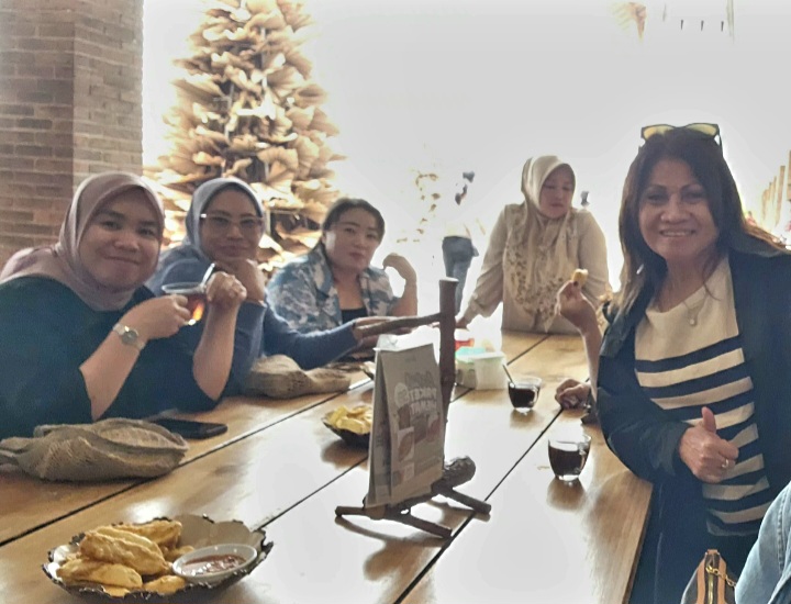 Berangkat dari Manado, rombongan tiga puluh ibu-ibu pengusaha menuju Tondano dan singgah makan di rumah makan terapung Astomi di Palelon Tondano.
