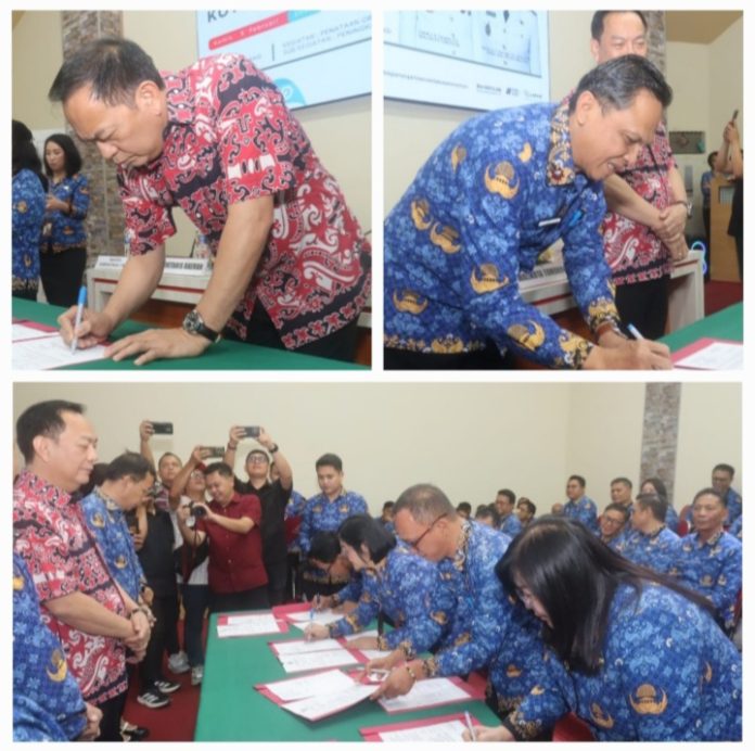 “Penandatanganan Penetapan Perjanjian Kinerja dan Komitmen Bersama ini bertujuan untuk memastikan penyelenggaraan pemerintahan berjalan terarah, terukur dan akuntabel”
