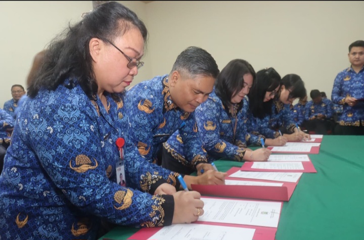 Penandatanganan dilakukan oleh Wali Kota Tomohon, Sekretaris Daerah, Staf Ahli Wali Kota, Asisten, Inspektur, Kepala Badan, Kepala Dinas, Kepala Bagian, Camat dan Lurah Se- Kota Tomohon