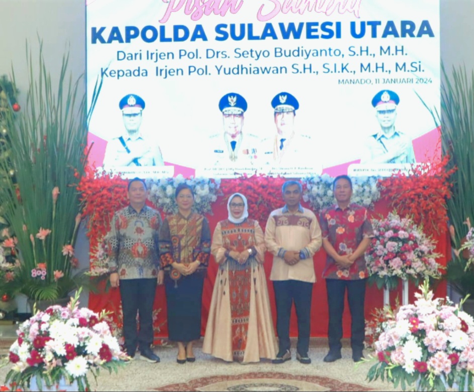 Pisah Sambut Kepala Kepolisian Daerah (Kapolda) Sulawesi Utara dari Irjen Pol Setyo Budiyanto kepada Irjen Pol Yudhiawan dilaksanakan di Wisma Negara Gubernuran Bumi Beringin Manado.