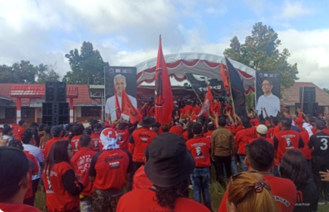 TOMOHON, Mileniumtimes.com – Fantastis ! Kampanye perdana PDI Perjuangan. Ribuan massa, kader dan simpatisan PDI Perjuangan hadir membanjiri kampanye terbuka di Dapil IV di lapangan Wailan Tomohon Utara Jumat (26/1).