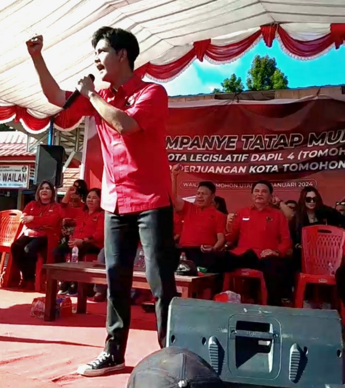 “Kita harus pinter-pinter membaca konten-konten yang menyudutkan PDI Perjuangan, ini yang harus kita lawan,” teriak Putra Minahasa Caleg PDI Perjuangan nomor urut 1 di Dapil Satu disambut pekikan setuju oleh massa.