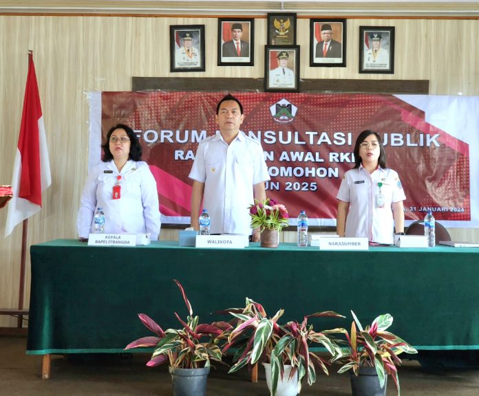 TOMOHON, Mileniumtimes.com – Badan Perencanan Penelitian dan Pengembangan Daerah (Bapelitbangda) Kota Tomohon gelar Konsultasi Publik Rancangan Awal Rencana Kerja Pemerintah Daerah (RKPD) untuk memperoleh masukan saran dan penyempurnaan dari Kepala Perangkat Daerah dan Pemangku Kepentingan.