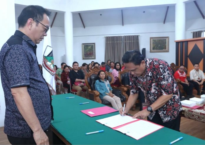 TOMOHON, MIleniumtimes.com – Perjanjian Kinerja tahun 2024 antara Pemerintah Kota (Pemkot) Tomohon dan Sekretaris Daerah Kota Tomohon serta para Kepala Bagian Setda Kota Tomohon dintandatangani