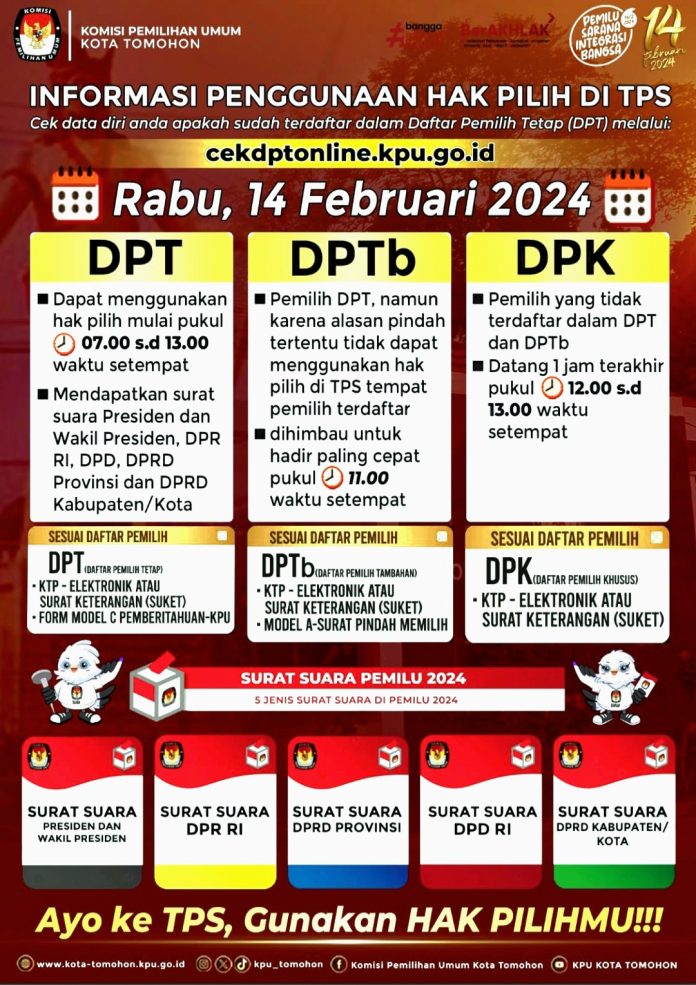 369 NEWS Komisioner KPU Tomohon Memanggil Masyarakat, “Ayo ke TPS, Gunakan Hak Pilihmu”, Rabu, 14 Februari 2024 (fry) FacebookTwitterPinterestWhatsApp BAGIKAN By: Administrator Date: February 11, 2024 Previous articleGiliran 504 Oma-Opa Tombar Wali Kota Caroll Senduk Bikin Tersenyum BahagiaNext articlePeletakan Batu Pertama Gereja GMIM Sion Woloan dan Resmikan Gereja GMIM Ruth Woloan Satu, Gubernur OD Didampingi Wali Kota CS BAGIKAN FacebookTwitterPinterestWhatsApp TERBARU TOMOHON, MILENIUMTIMES.com — Influencer Didi Roa Terlihat Mampir Makan @Kuliner Noni Foodie di Halaman Gereja Tua Sion Tomohon tadi malam, Rabu (15/4/26) (fry). Serius Kembangkan Industri Kreatif Tomohon, CS Perjuangkan Langsung Kepada Mentri Erkraf Kelola Sampah, Menteri LH Hanif Nurofiq Nilai Tomohon Berhasil Tinggalkan Open Dumping Dibuka Mendagri Tito Karnavian, Wali Kota CS Hadiri Musrenbang Sulut, Menteri Sirait Juga Hadir Menteri PKP dan Mendagri Tinjau Program Perumahan Subsidi, Caroll Senduk Beri Apresiasi