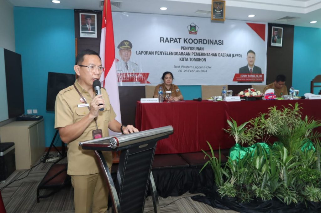 TOMOHON, Mileniumtimes.com – Rapat Koordinasi Penyusunan Laporan Penyelenggaraan Pemerintahan Daerah (LPPD) Kota Tomohon dibuka Wali Kota Tomohon yang diwakil oleh Asisten Pemerintahan dan Kesejahteraan Rakyat (Asisten Satu) Sekretaris Daerah Kota Tomohon ODS Mandagi.