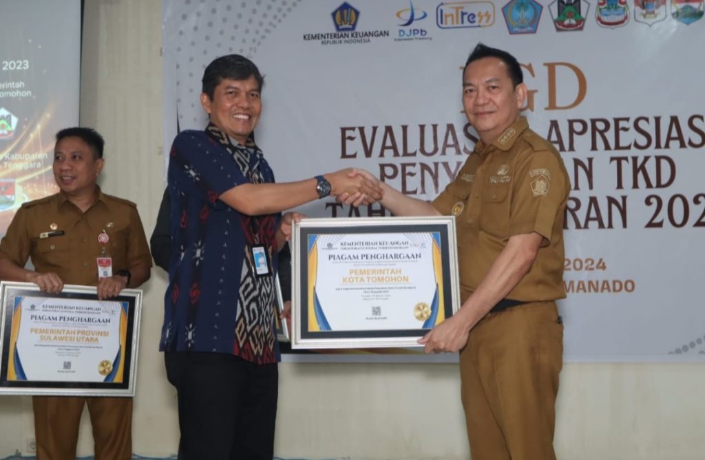 TOMOHON, Mileniumtimes.com – Atas sinergi dan koordinasi dalam penyaluran Dana Transfer ke Daerah Tahun Anggaran 2023, Pemerintah Kota (Pemkot) Tomohon, menerima penghargaan.