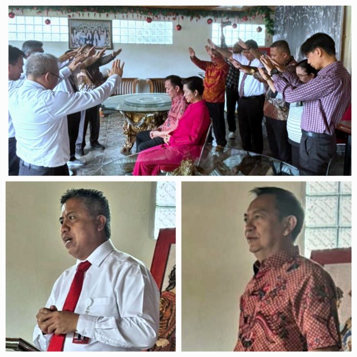 TOMOHON, Mileniumtimes.com — Ketua Sinode Gereja Masehi Advent Hari Ketujuh (GMAHK) Converence Minahasa, Pdt. Tommy Benny Ole, M. Fils memimpin ibadah pengutusan kepada Caroll Joram Azarias Senduk yang akan mengikuti pemilihan kepala daerah (Pilkada).